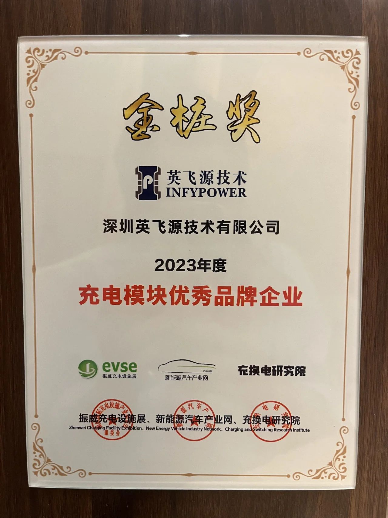 29日晚,英飛源技術應邀參加中國國際新能源汽車充電設施產(chǎn)業(yè)發(fā)展大會的“2023金樁獎中國充電樁十大品牌頒獎盛典”,榮獲“2023年度充電模塊優(yōu)秀品牌企業(yè)”稱號。