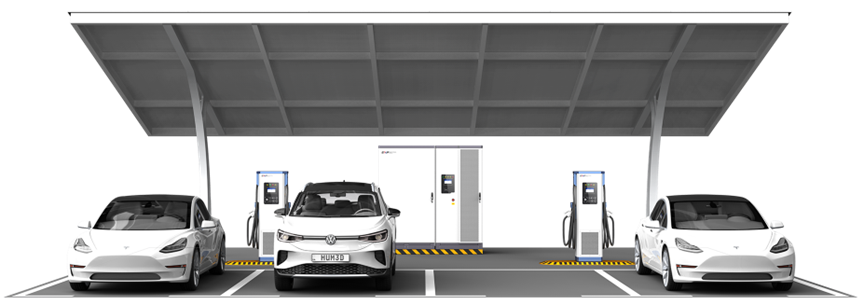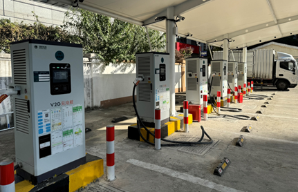 2023年全國各地開始啟動超充之城建設,英飛源推出了集光伏、儲能、液冷超充、V2G功能于一體的綜合能源補給系統,該系統配置200kWh儲能電池,600A液冷超充終端及V2G充電終端,并可接入VPP虛擬電廠,接受電網的統一調度,當前已部署在全國一百多個站點。